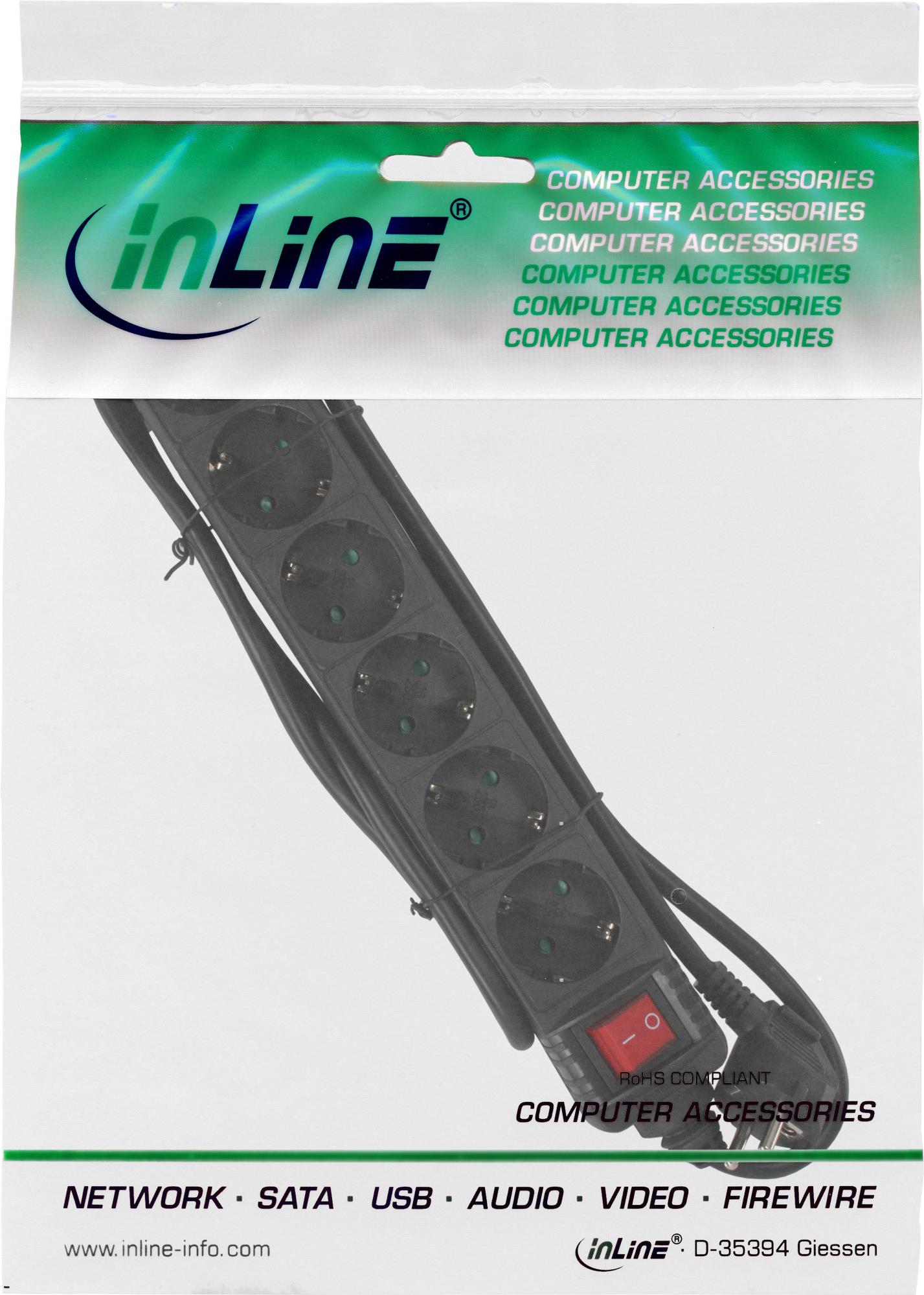 InLine - Steckdosenleiste - Ausgangsanschlüsse: 6 - 5,0m Schnur - Schwarz (16465T)