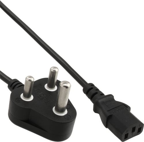 Netzkabel zum Anschluss von Elektrogeräten mit Kaltgeräteanschluss in Steckdose Südafrika.• Netzstecker Südafrika 10A Typ M, auch zu finden in folgenden Ländern: Bhutan, Botsuana, Indien, Lesotho (ausschließlich), Macao, Mosambik, Namibia, Nepal, Sri Lanka, Südafrika, Swasiland (ausschließlich)