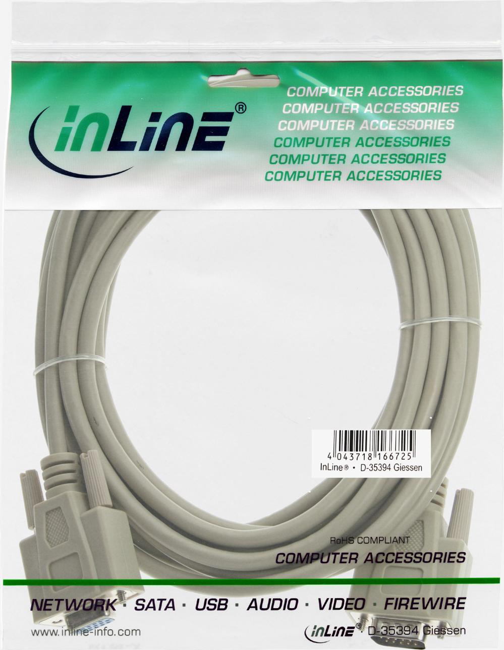InLine - VGA-Verlängerungskabel - HD-15 (M) - HD-15 (W) - 1,0m - geformt - beige (17737)