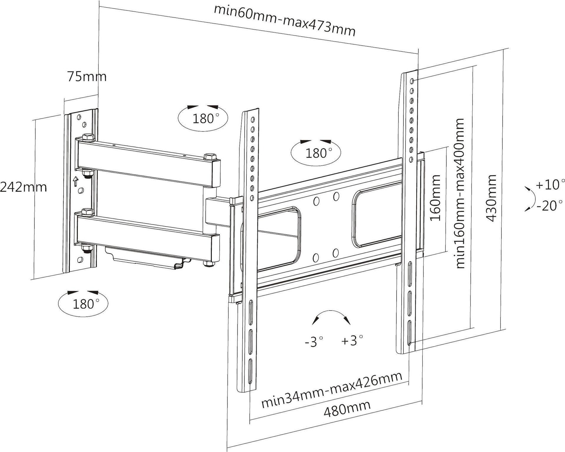 • Für folgende VESA Lochabstände geeignet: 100x200mm, 200x200mm 400x200mm, 300x300mm, 400x400mm