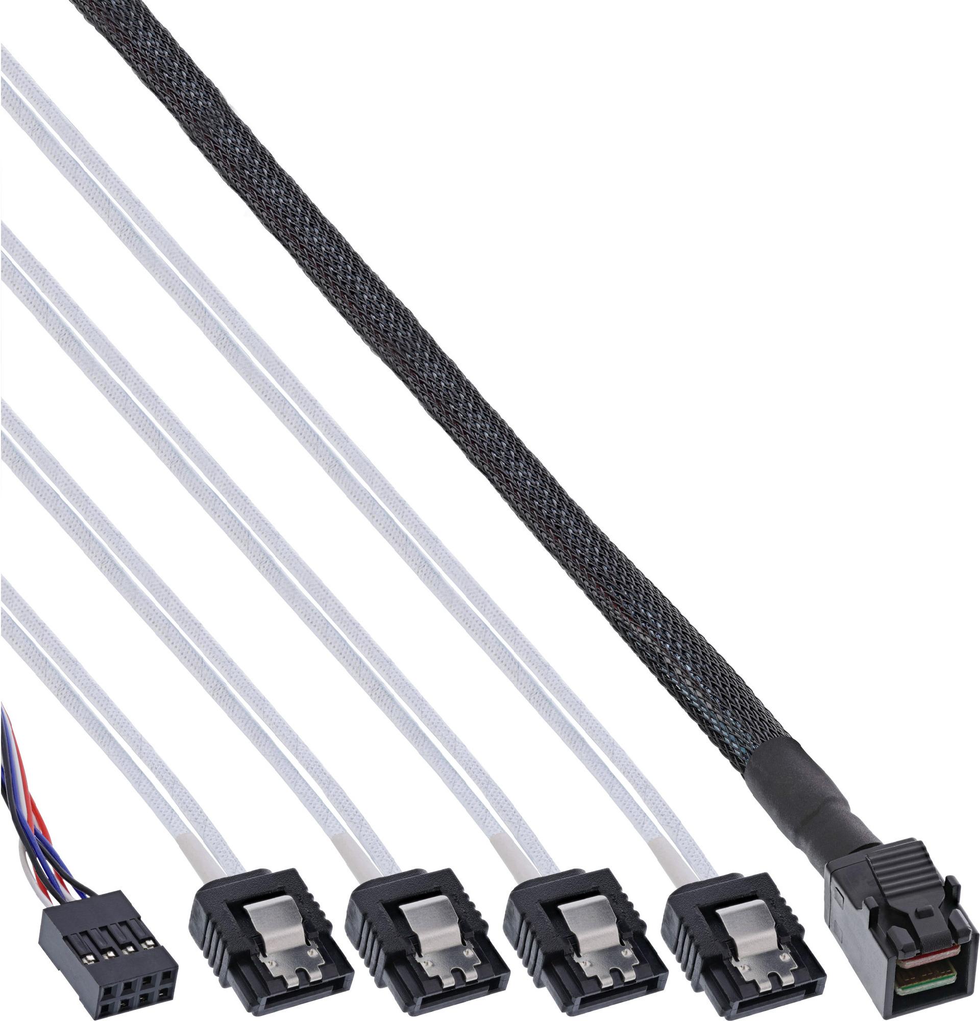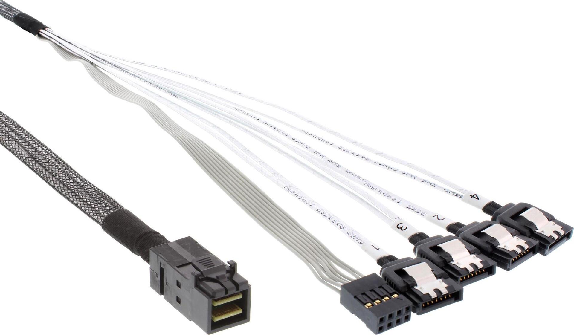InLine® Mini SAS HD Kabel, SFF-8643 zu 4x SATA + Sideband, 0,5m (27630A)
