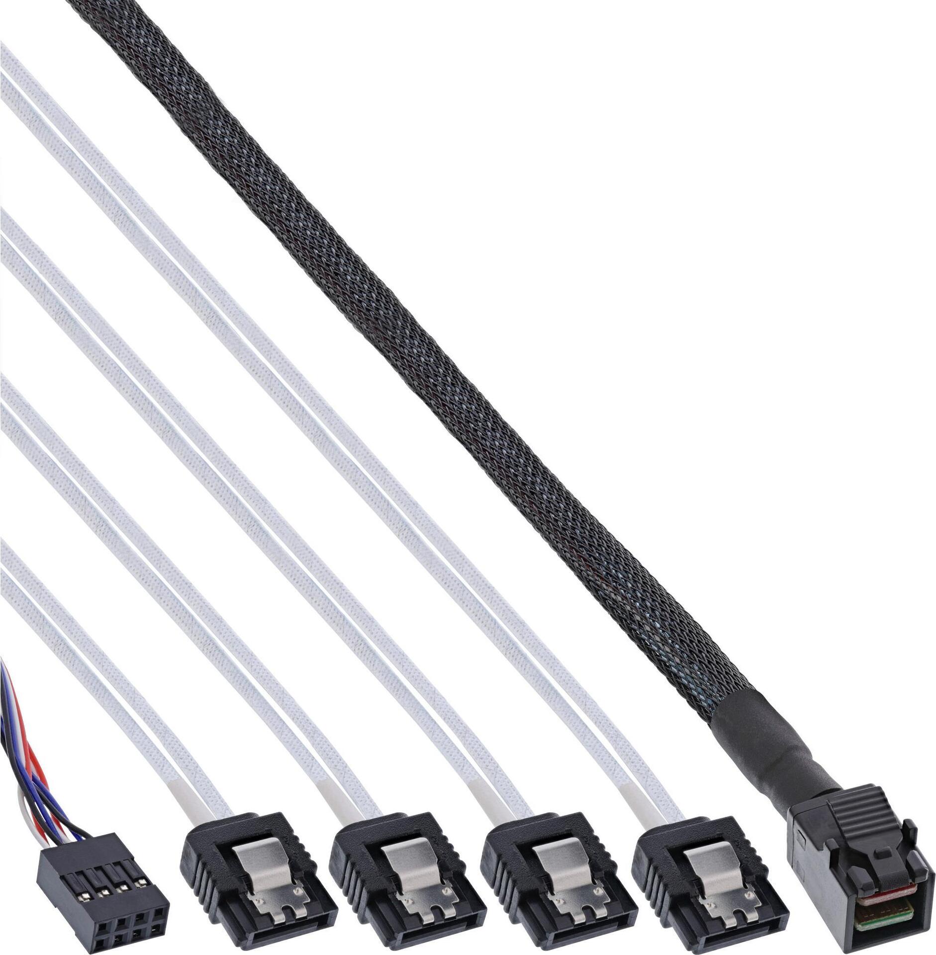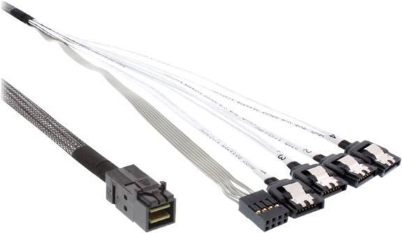 InLine - Internes SAS-Kabel - mit Sidebands - gerade durchgeführt - 4-Lane - 4x Mini SAS HD (SFF-8643) zu SATA - 1,0m - eingerastet - Schwarz (27630B)