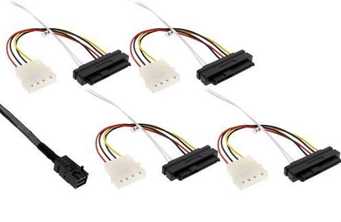 Mini SAS HD Stecker (SFF-8643) zu 4x SAS Stecker SFF-8482 + 13,30cm (5,25") Stromstecker