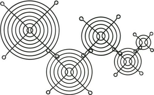 Lüftergitter verhindern das Berühren von drehenden Rotoren bei Gehäuselüftern.• Material: Metalldraht, ca. 1,5mm Durchmesser