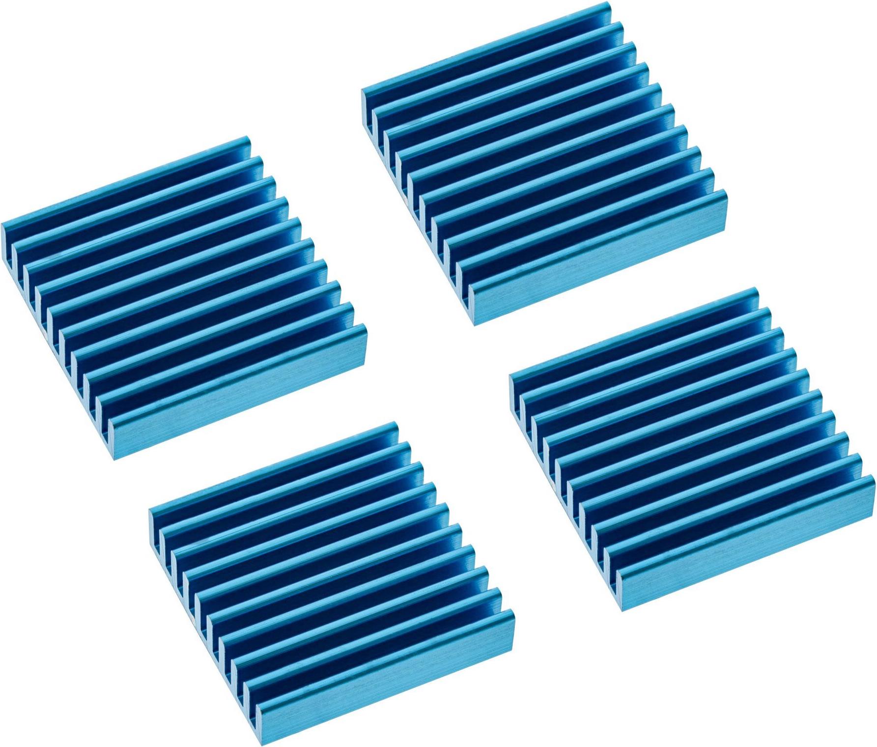 Passivkühlkörper für Speicherbausteine. Schützen Sie Ihren RAM-Speicher vor Überhitzung! Die einzelnen Kühlkörper sind schon mit Wärmeleitpads ausgestattet. • Farbe: blau• Abmessungen (LxBxH): 22x20x5mm• Menge: 4 Stück
