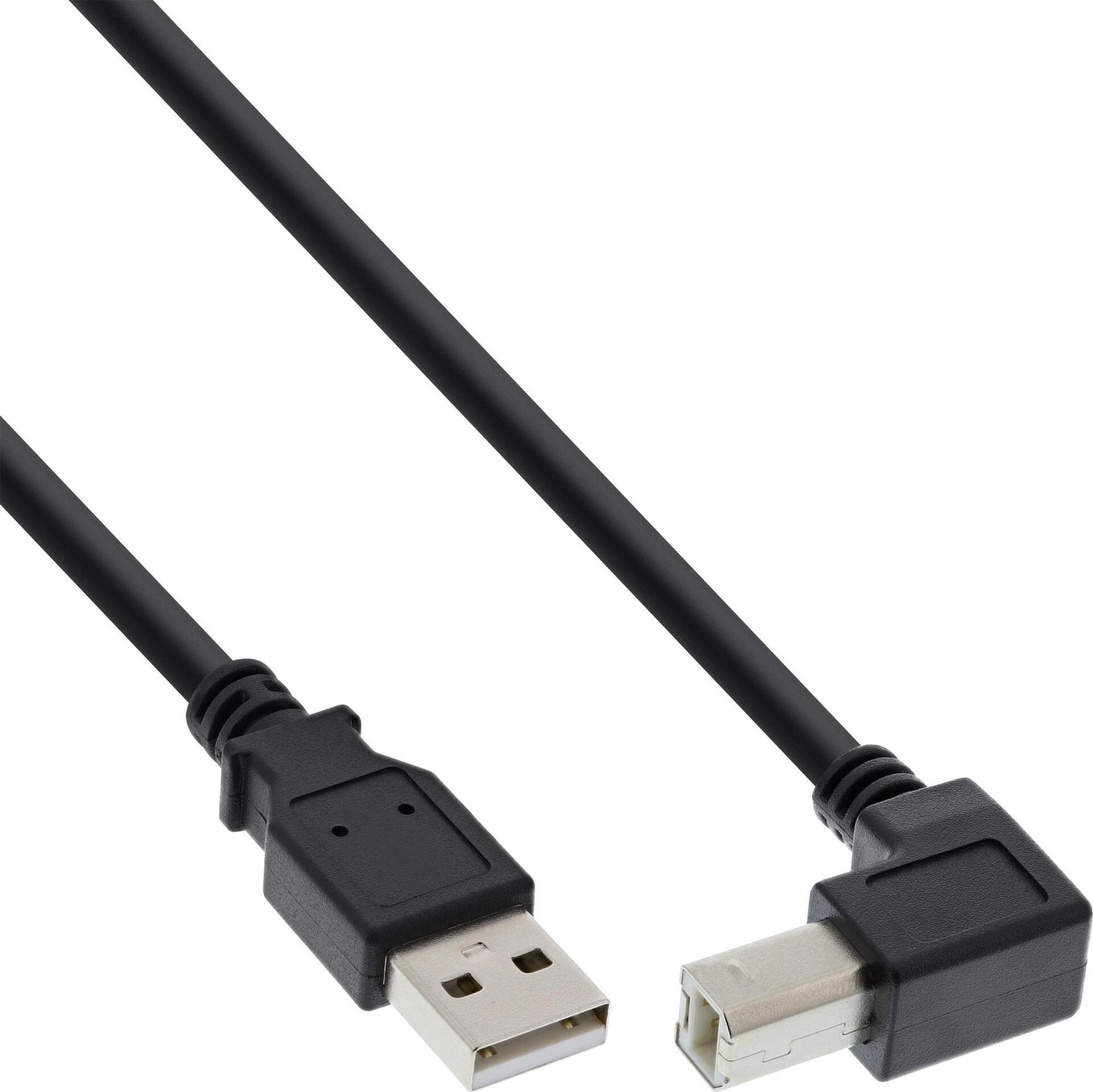 InLine® High Speed USB 2.0 ( Universal Serial Bus ) Kabel für die Datenübertragung mit einer maximalen Geschwindigkeit von 480Mbit/s. Dieses Kabel ist mit allen USB 2.0 und USB 1.1 und USB 1.0 Schnittstellengeräten kompatibel. Der um 90 Grad gebogene Typ-B-Stecker erleichtert die Installation in allen Situationen, in denen der Platz knapp ist.• USB Typ A Stecker auf USB Typ B Stecker