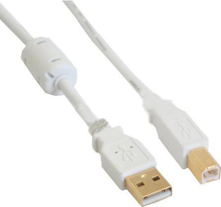 InLine® USB 2.0 Kabel, A an B, weiß/gold, mit Ferritkern, 1m (34510W)