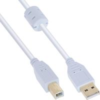 InLine® USB 2.0 Kabel, A an B, weiß/gold, mit Ferritkern, 3m (34535W)