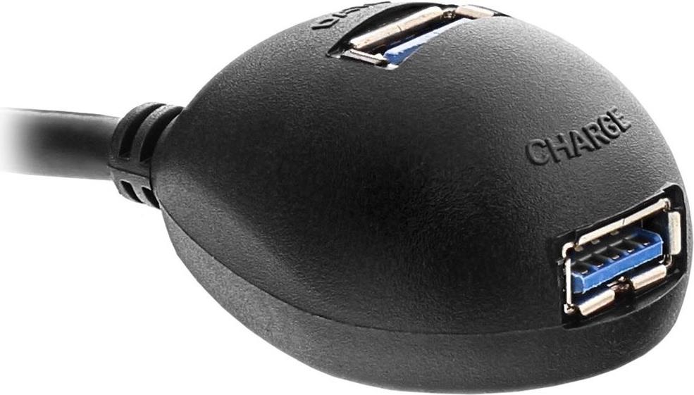• Der vordere Anschluss "Charge" liefert die 5V USB Spannung und dient zum Aufladen ohne Datenübertragung, z. B. von iPod, iPhone, MP3 Player, etc.