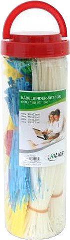 InLine® Kabelbinder aus Polyamid 6.6 lassen sich schnell und einfach von Hand oder mit Spezialwerkzeug anbringen und ren durch ihre Innenverzahnung eine perfekte Abdichtung. Hohe Beständigkeit gegen Seewasser, Öle, Fette und dergleichen. Bei der Lagerung empfehlen wir, darauf zu achten, dass die Kabelbinder in geschlossenen Verpackungen aufbewahrt werden. Außerdem empfehlen wir, die Kabelbinder keiner direkten Sonneneinstrahlung oder direkten Wärmequellen (Heizkörper) auszusetzen, um ein Austrocknen bei längerer Lagerung zu vermeiden. Unsere Kabelbinder entsprechen der ISO EN62275.Kabelbinderset bestehend aus:• 100 x 100x2,5mm, rot• 100 x 100x2,5mm, blau• 100 x 100x2,5mm, gelb• 100 x 100x2,5mm, grün• 100 x 150x3,6mm, gelb• 100 x 150x3,6mm, blau• 100 x 150x3,6mm, weiß• 100 x 200x3,6mm, weiß• 50 x 200x3,6mm, rot• 50 x 200x3,6mm, gelb• 100 x 300x3,6mm, weiß