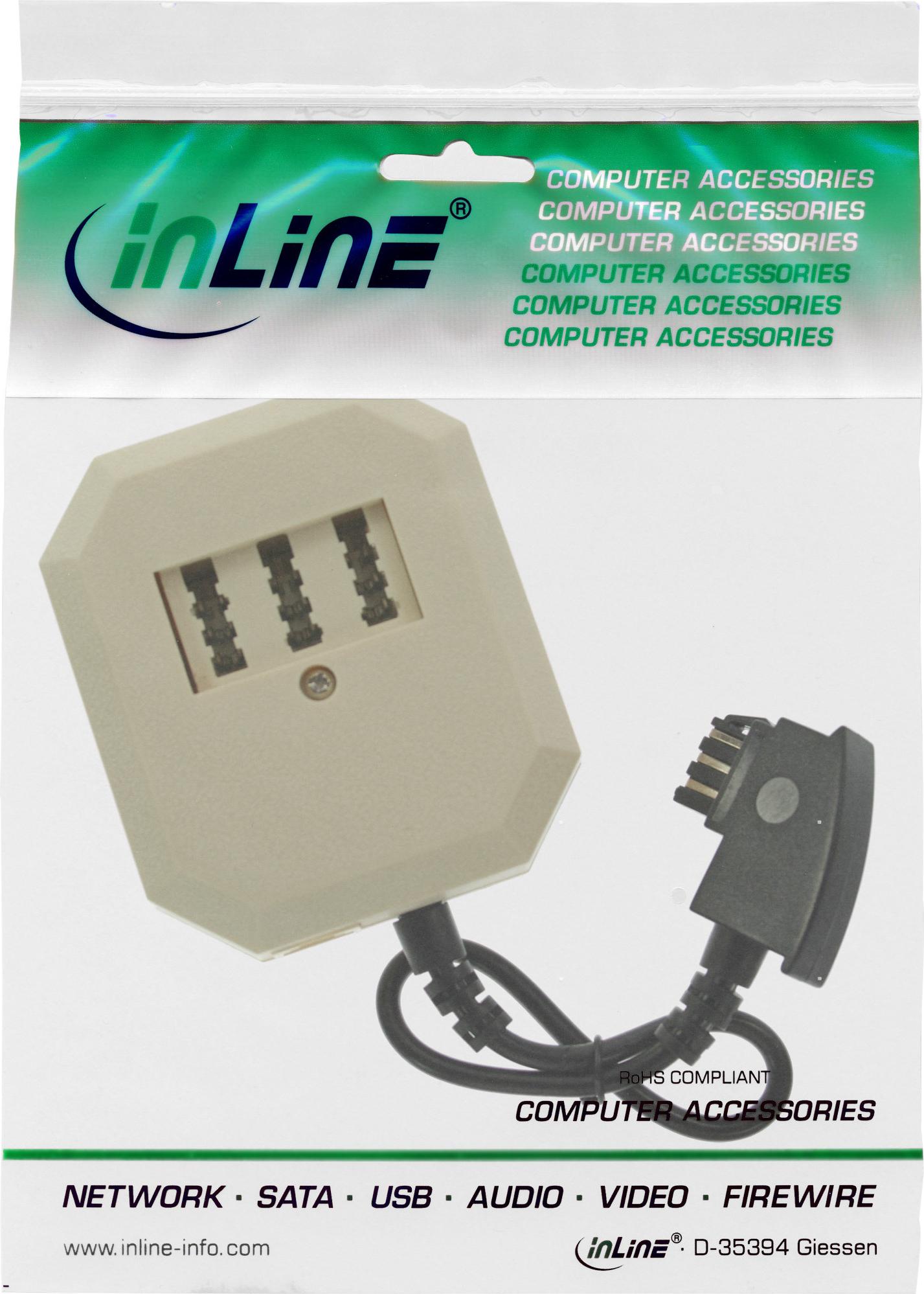 InLine® TAE Adapter, TAE-F Stecker an TAE NFF + RJ11 (6P4C) Buchse, 0,2m (69901)