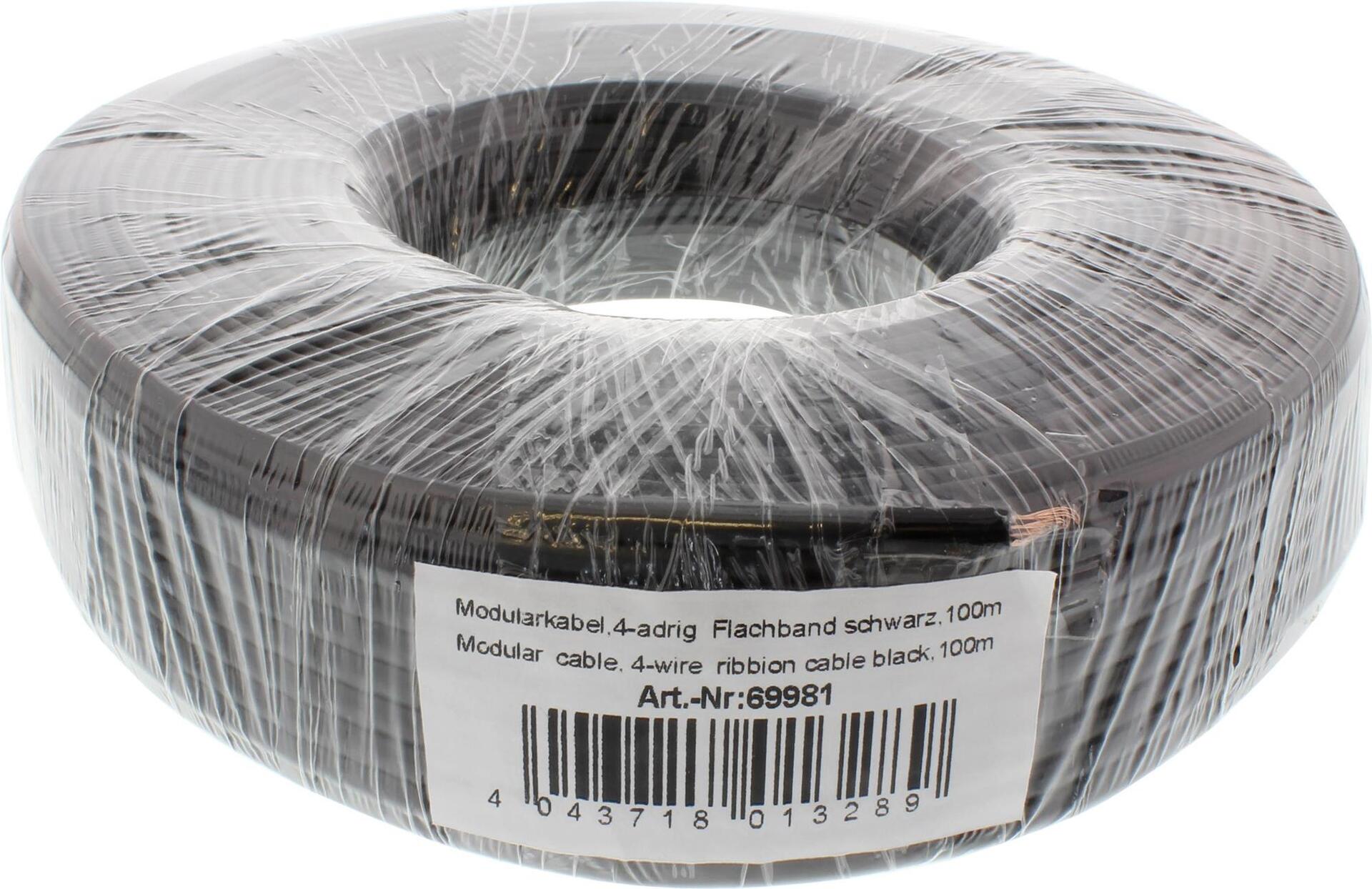 • InLine® Modularkabel, 4adrig Flachband schwarz, 100m Ring (69981)