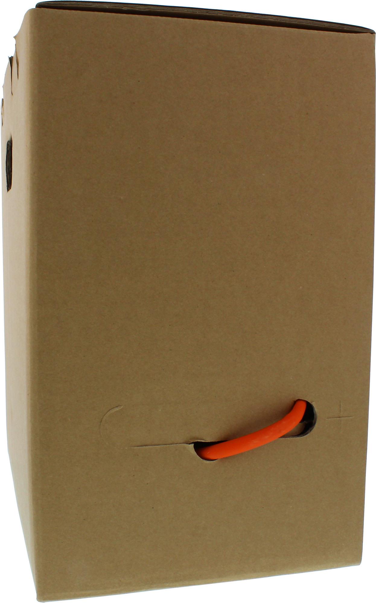 Das Verlegekabel wird in einer Trommel-Box zum einfachen entnehmen der erforderlichen Länge ausgeliefert. Die Verpackung besteht aus einer Kunststoffrolle auf der das Datenkabel aufgerollt ist. Diese Rolle ist in einem verstärkten Papp-Karton fixiert, wodurch ein einfaches und verknotungsfreies Abrollen gesichert ist. Folgende Vorteile bietet die Trommel-Box:• Kostenreduktion durch leichtes Handling auf der Baustelle ohne zusätzliche Abtrommelvorrichtung