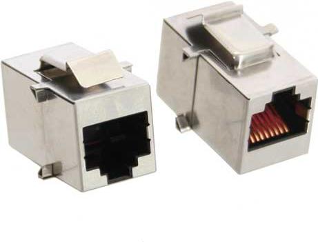 Mit der Snap-In- oder Keystone-Technologie lassen sich strukturierte Lan-Netze mit genau der Anzahl von Ports oder Einsätzen realisieren, die benötigt werden. Diese Lösung ermöglicht somit die Verwendung von Haltern verschiedener Hersteller, um sich bei der Installation besser an die Umgebungsanforderungen anzupassen. Snap-In-Module passen in den Tragrahmen von Steckdosen namhafter Hersteller wie Gira, Merten, PEHA (Einsatzgröße: 14,6 x 19,4 mm)• Durchführungs-Snap-In-Modul