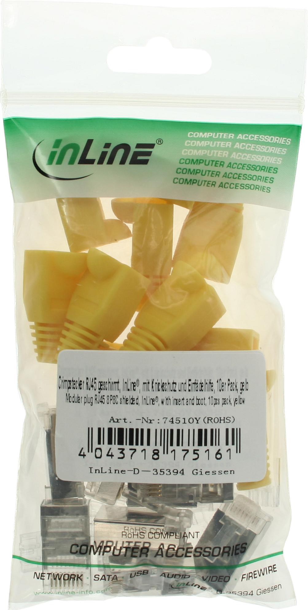 InLine® Crimpstecker RJ45 geschirmt, mit Knickschutz und Einfädelhilfe, 10er Pack, gelb (74510Y)