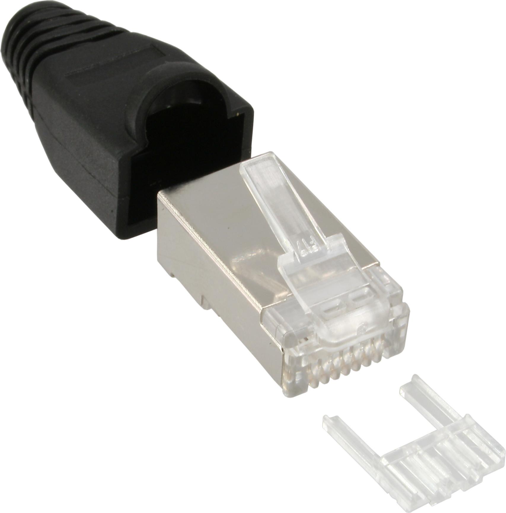InLine® Crimpstecker RJ45 geschirmt, mit Knickschutz und Einfädelhilfe, 100er Pack, schwarz, Bulk (74590S)