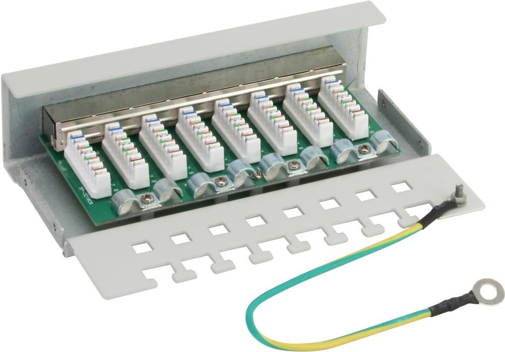 In diesem Desktop Patchfeld können bis zu 8 Verlegekabel über LSA Schneidklemmen angeschlossen werden. Das Patchfeld ist bis Cat. 6 ausgelegt und ist voll abgeschirmt. Die RJ45 Anschlüsse sind durchnummeriert.• Zur Tisch- und Wandmontage geeignet