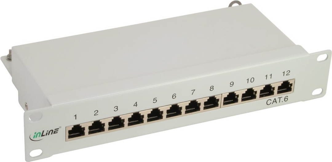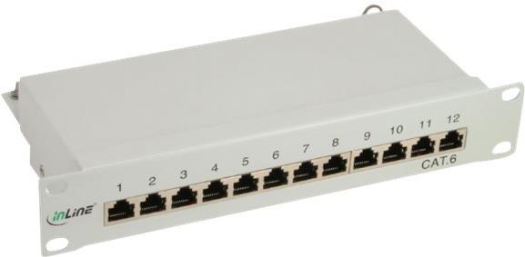 InLine® Patchfeld Cat.6, 12-fach, 25,4cm (10"), 1HE, lichtgrau, RAL7035• Voll geschirmt