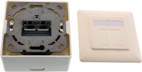 Die Cat. 6A Anschlussdose mit 2x RJ45 Buchsen wird Aufputz oder Unterputz montiert und verfügt über zwei LSA Anschlussleisten mit jeweils 8 Schneidklemmen. Die Anschlussdose ist komplett abgeschirmt.Hauptmerkmale