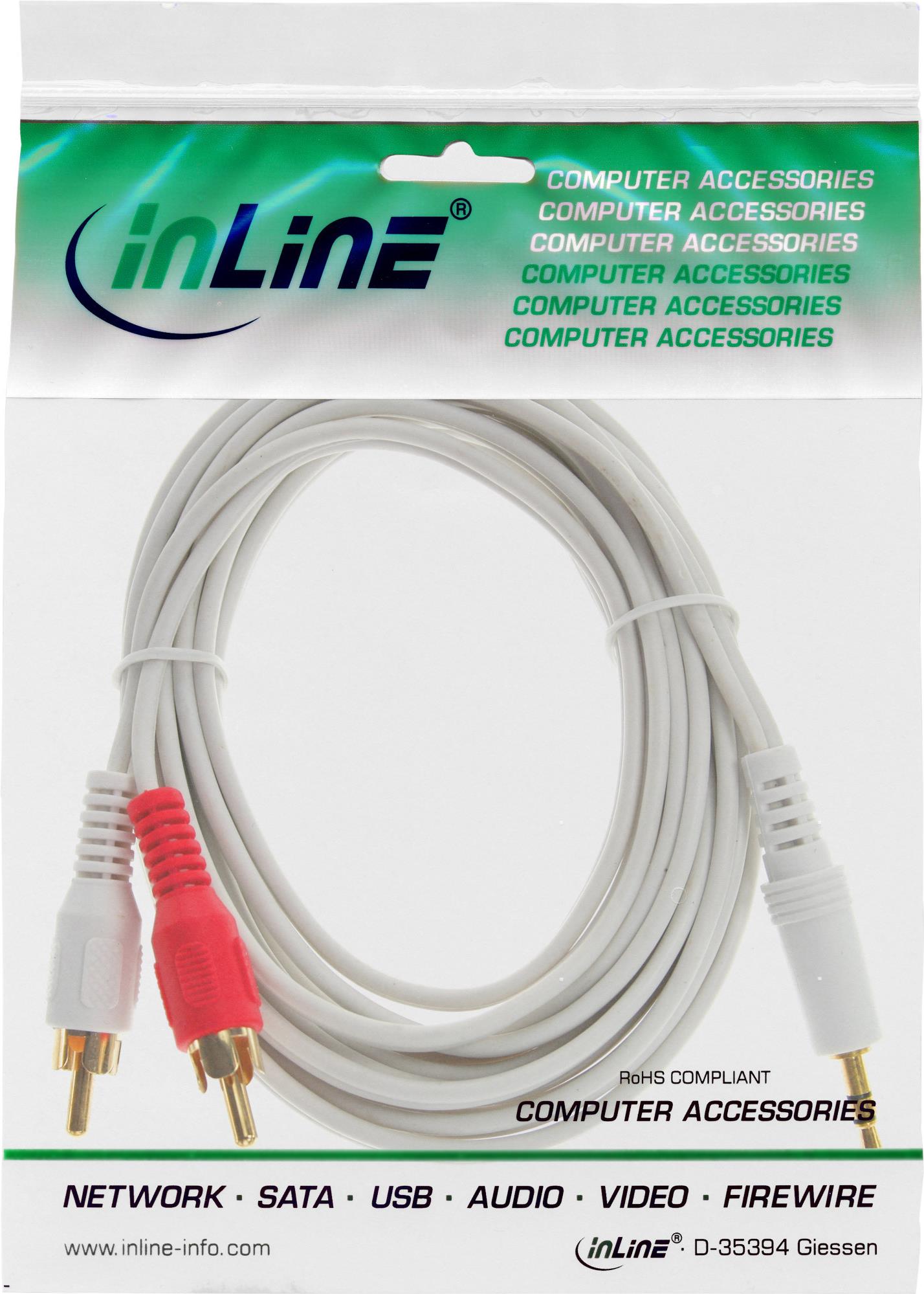 InLine - Audiokabel - RCA (M) - Mini-Phone Stereo 3,5 mm (M) - 5,0m - Weiß (89930W)