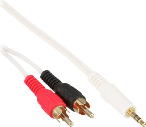 Cinch/Klinke Kabel zur Übertragung von Audio-Signalen, z.B. vom PC zur Stereo-Anlage• 2x Cinch Stecker an 3,5mm Klinke Stecker