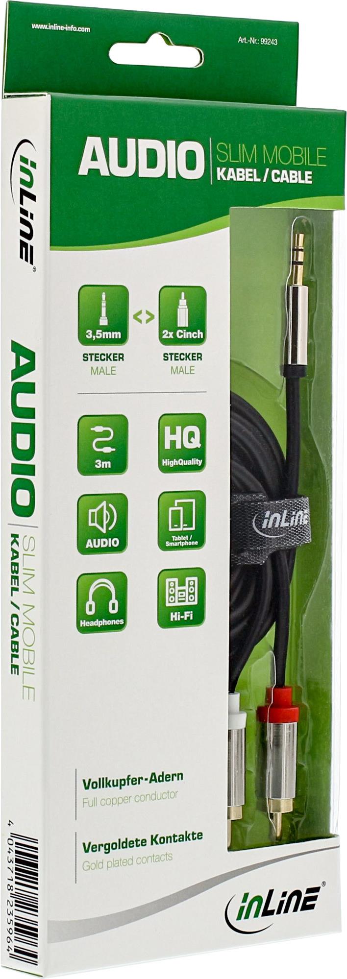 InLine - Audiokabel - Mini-Phone Stereo 3,5 mm (M) - RCA-Phono x 2 (M) - 10,0m - abgeschirmt - Schwarz (99240)