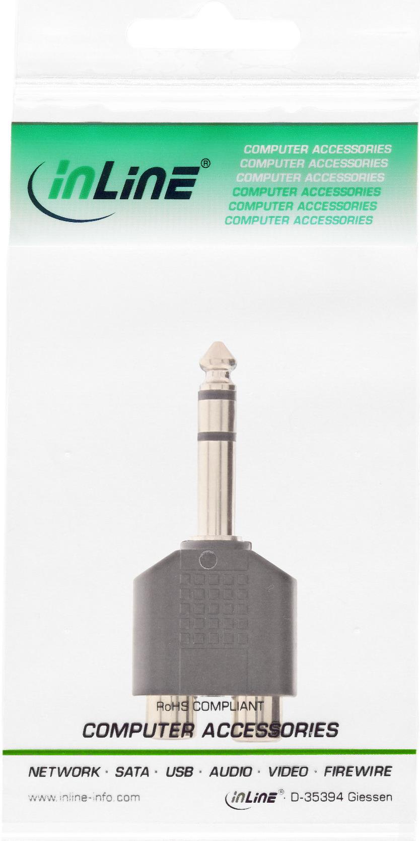 InLine® Audio Adapter, 6,3mm Klinke Stecker auf 2x Cinch Buchse, Stereo (99323)