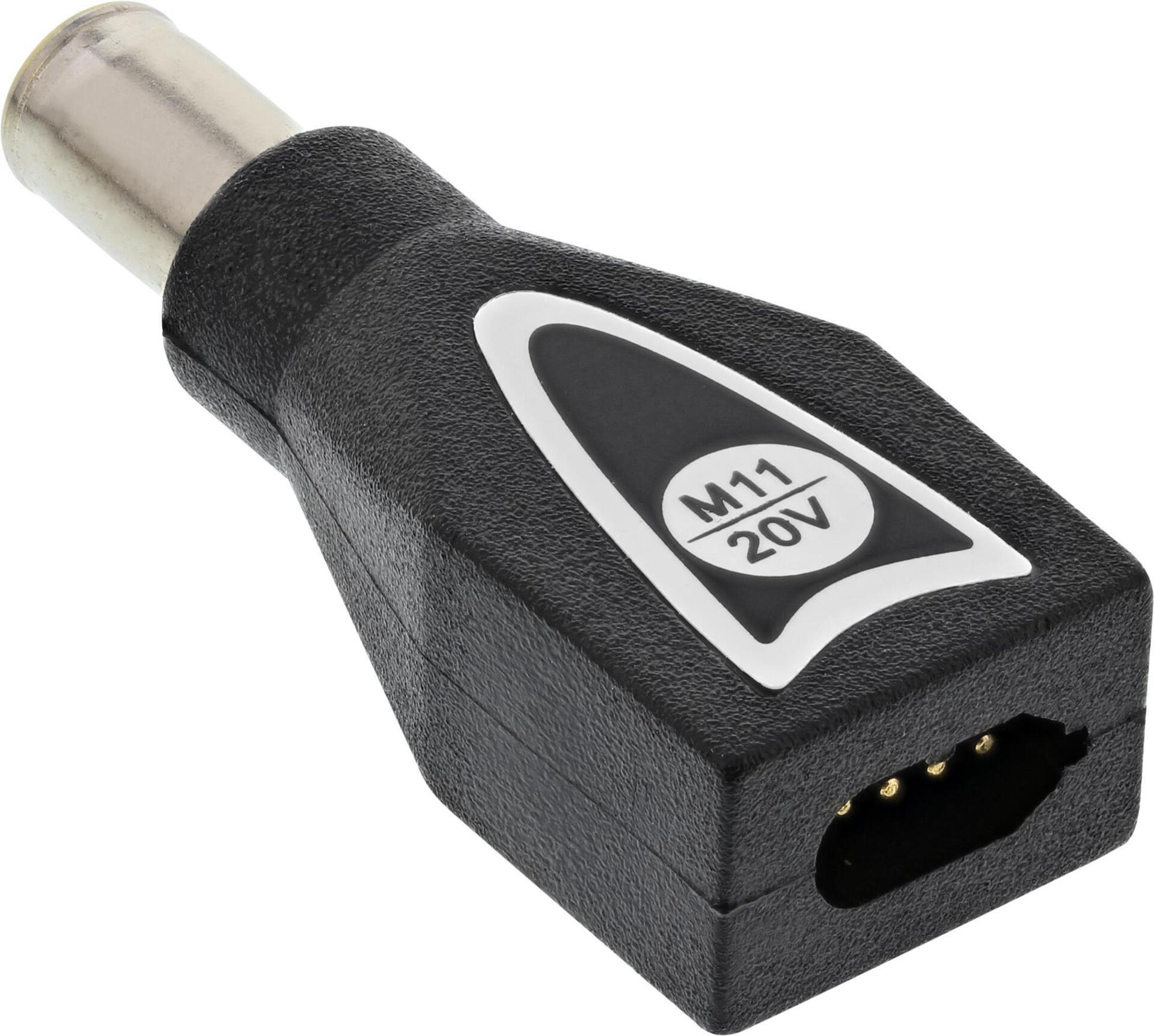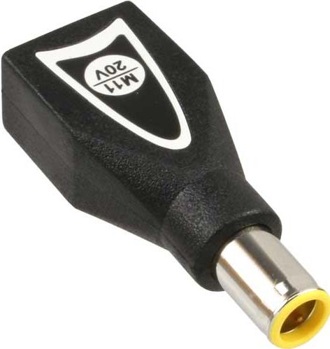 InLine® Wechselstecker M11 für Universal Netzteil, 90W/120W• Farbe: schwarz• Bauform / Spannung: M11 / 20V• Steckerkontakt-Abmessungen: 7,9 x 5,4 x 12mm mit Pin• Passend z. B. für Modelle: IBM, Lenovo: 20V/3.25A, 20V/4.5A etc.
