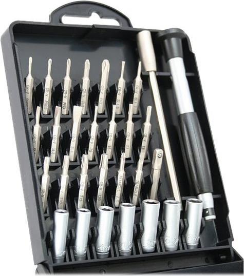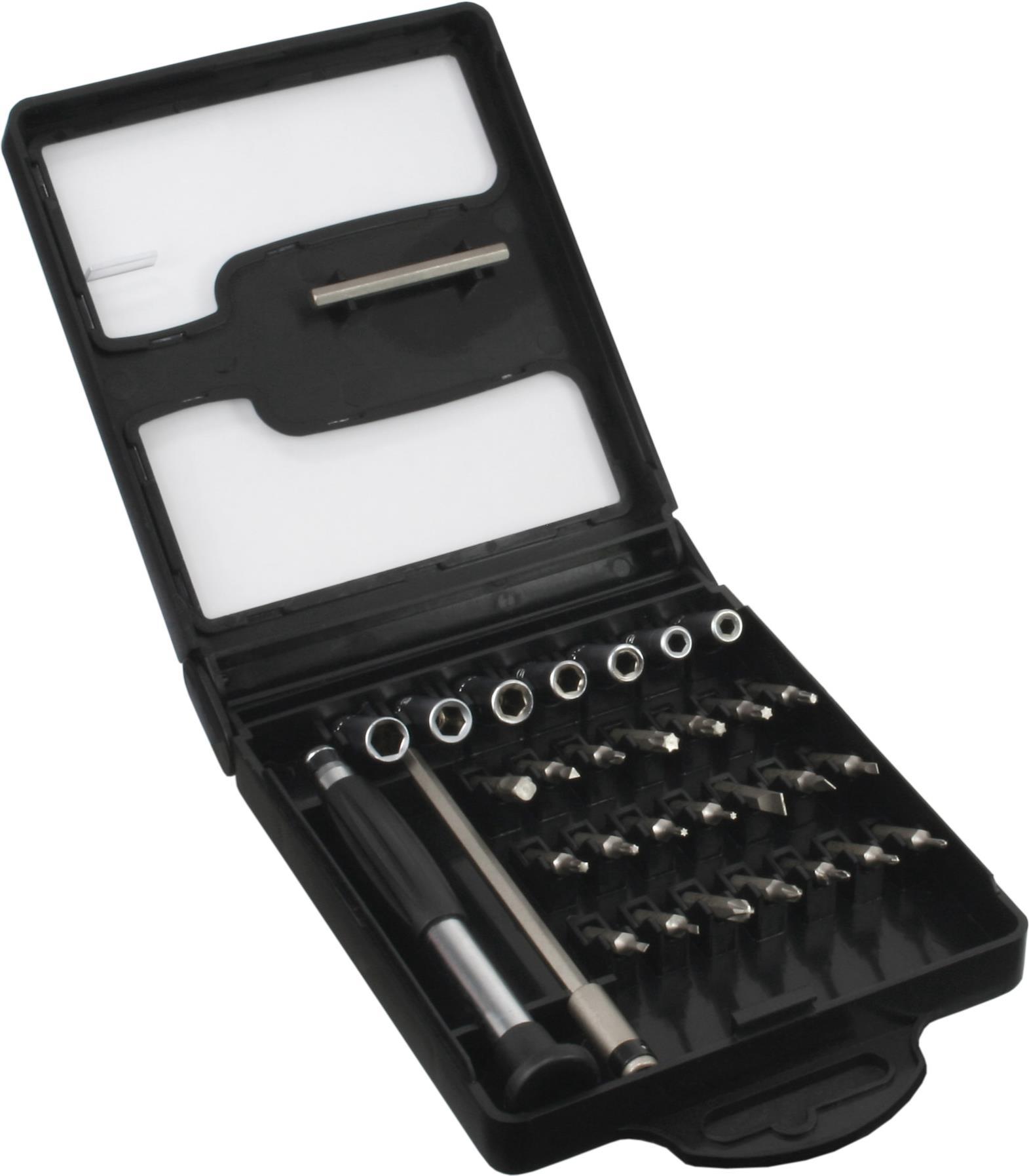 Präzisions-Schraubendreher-Satz für feine Arbeiten, z. B. zur Montage am PC oder für Hobby Bastler im Bereich Modellbau, Feinmechanik, Uhren etc. verwendbar. Über eine ca. 8cm lange Verlängerung lassen sich auch schwierige Stellen erreichen. folgende Bits sind im Set enthalten: • Bits für Schlitzschrauben: SL1.5, SL1.7, SL2, SL3, SL4