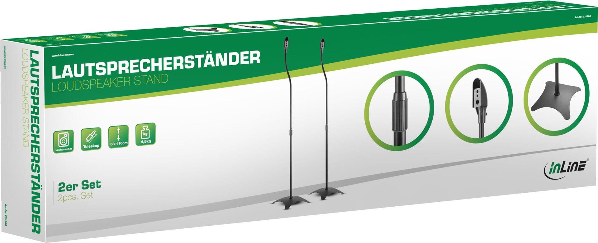 InLine® Lautsprecher Standhalter Teleskop 68-110cm, 2 Stück, schwarz (23126C)