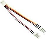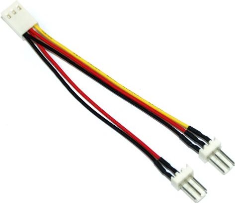 Ermöglicht den Anschluss von 2 Lüftern mit 3pol. Molexstecker an einem Mainboard-Anschluss. Das Tachosignal von einem Lüfter wird hierbei übertragen, der andere Lüfter wird mit Spannung versorgt.