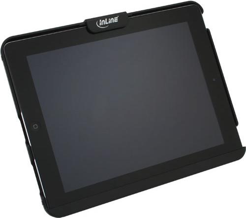 Die flexible Sicherheits-Halterung für das iPad. Diese Halterung für iPad (Generation 1, 2, und das neue Retina iPad 3/4) uns das iPad Air 1/2 ist ideal geeignet für Präsentationen, Messen, Shop-Ausstellungsflächen und überall dort, wo Ihr iPad etwas präsentieren aber nicht entwendet werden soll. Neben der praktischen Handhabung mit 7 horizontalen Winkeln und einer vertikalen Position kann diese Halterung an die Sicherheitsleine gelegt werden, womit das iPad zusätzlich vor Diebstahl geschützt wird. Das mitgelieferte Sicherheitsseil mit 2 Schlüsseln passt in eine Öffnung der Halterungsrückseite und verhindert das Öffnen und Entwenden des iPads. Die Halterung selbst hat weitere Öffnungen zum Bedienen des iPads, z.B. für die Kamera, Lautstärke und die Standby-Taste. Ein in der Halterung eingeklebtes Moosgummi verhindert das Verrutschen des iPad.• iPad Halterung mit Diebstahlschutz zur Präsentation