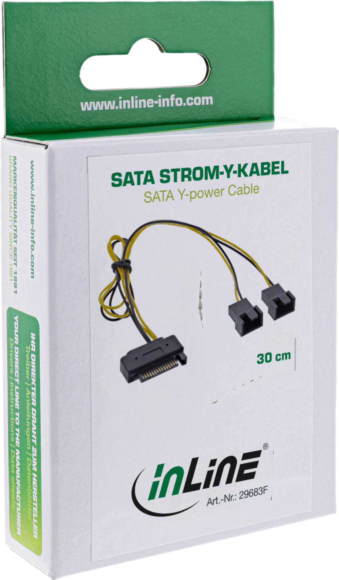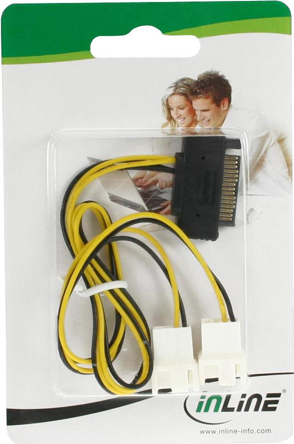InLine® SATA Strom-Y-Kabel, SATA Bu an 2x Lüfter (2pol) St, 0,30m (29683F)