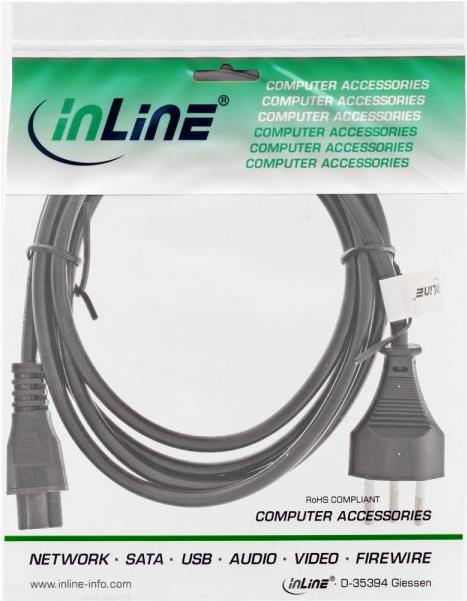 InLine Netzkabel Netzstecker Schweiz - 3pol/Buchse 2,0 m schwarz (16656C)