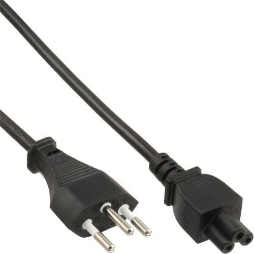 Netzkabel mit 2-poligem Schutzkontakt zum Anschluss externer Netzteile von Notebooks und ähnlichen Geräten mit einer maximalen Stromaufnahme von 2,5A an das 250V-Netz• Stecker SEV 1011 (Schweiz)