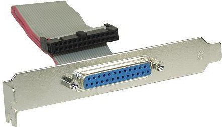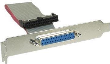 Slotblech mit 25pol. Sub-D Buchse, zum Anschluss z. B. an einen 26pol. IDC Parallelport Anschluss auf dem Mainboard• Kabellänge ca. 35cm