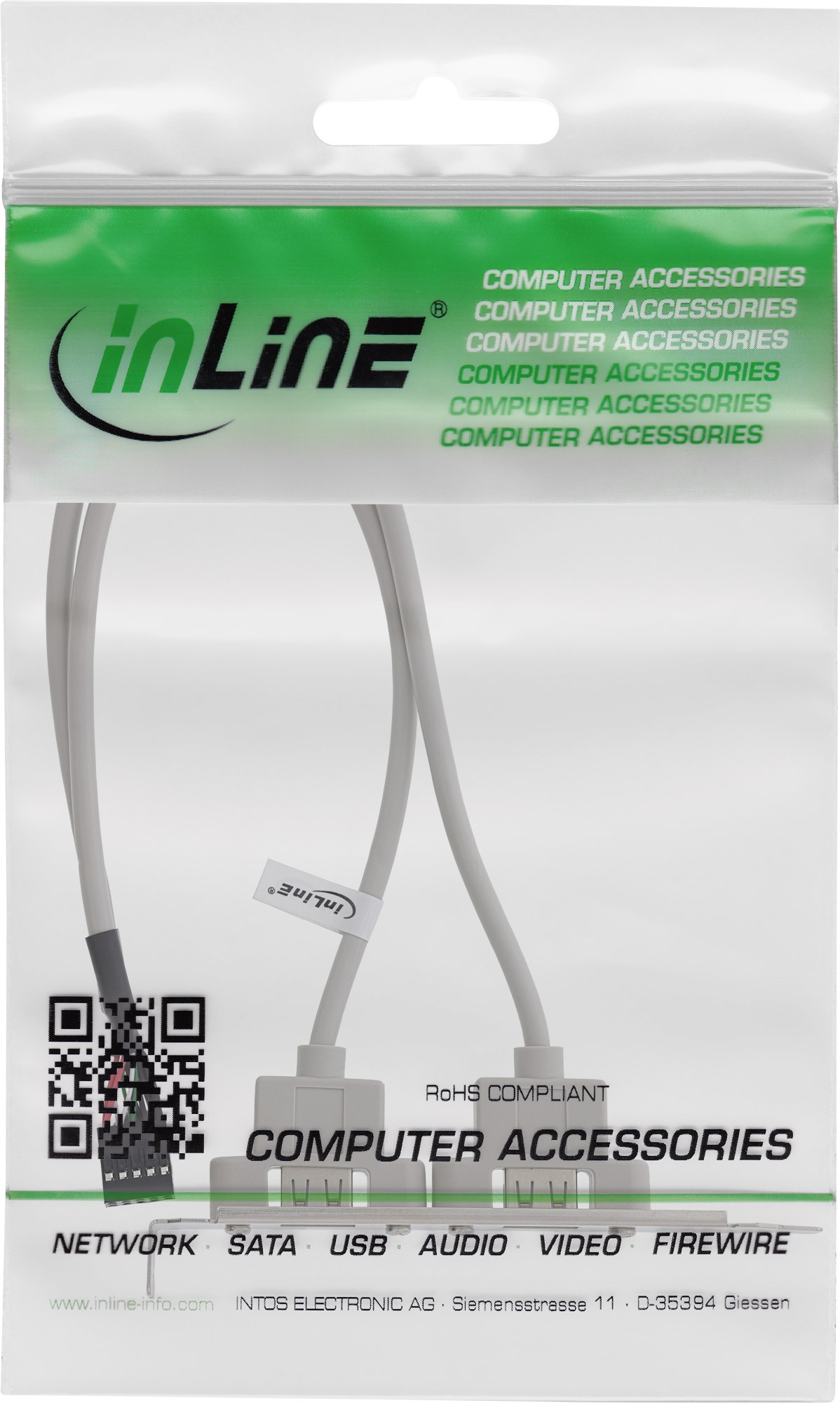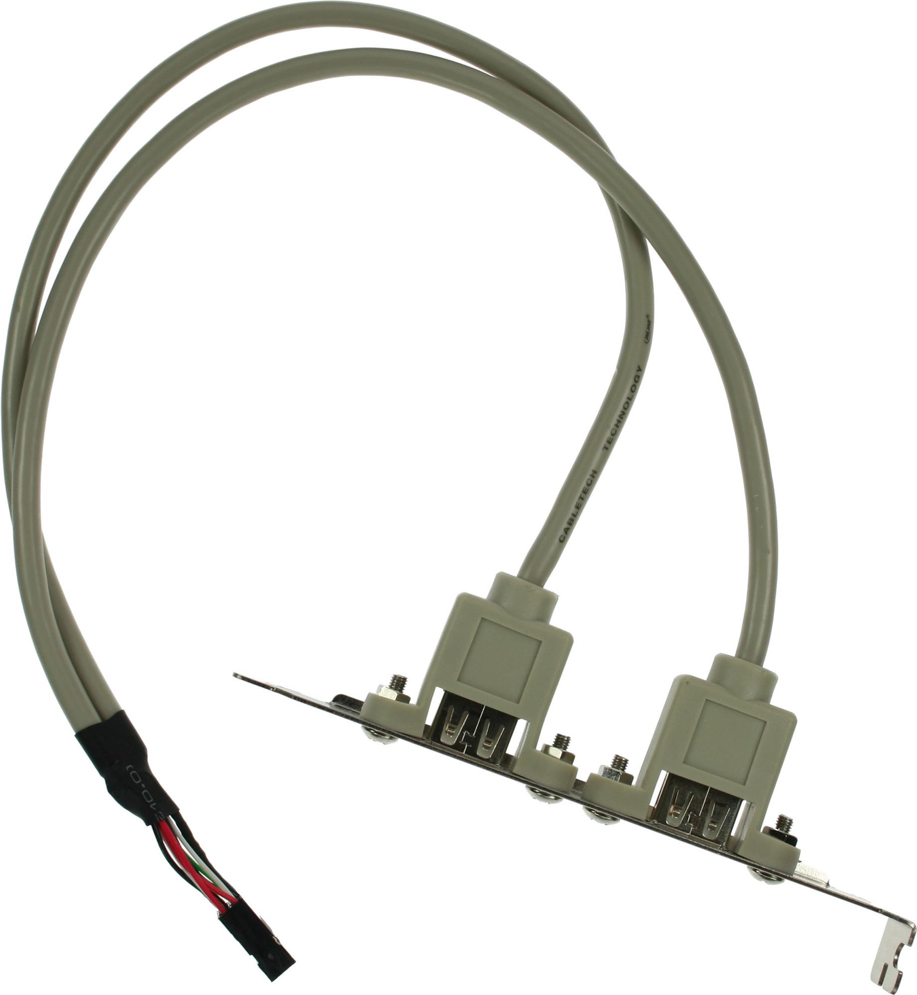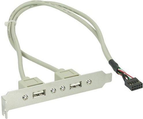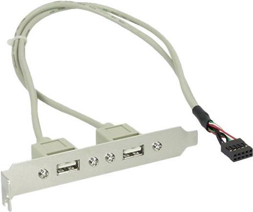 InLine® Slotblech für den Anschluss externer USB 2.0-Geräte an den IDC-Anschluss auf dem Motherboard.• Extern: 2x USB Typ A Buchse montiert auf Slotblech