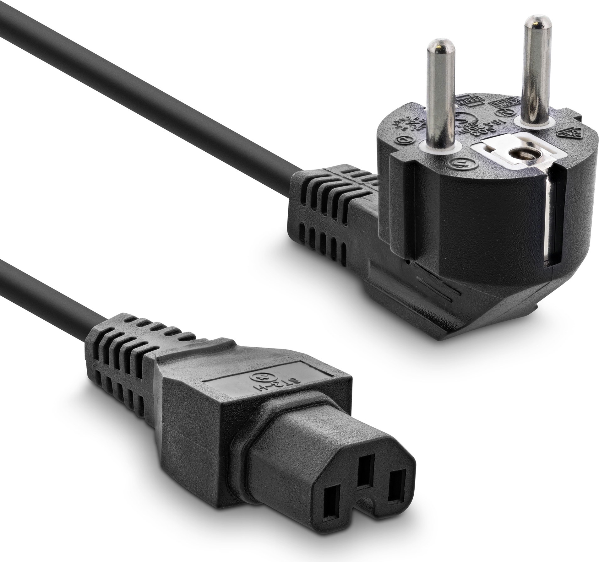 • Stecker B: 90° CEE 7/7 (deutscher) Stecker mit 2 Pins und Schutzkontakt, gewinkelt