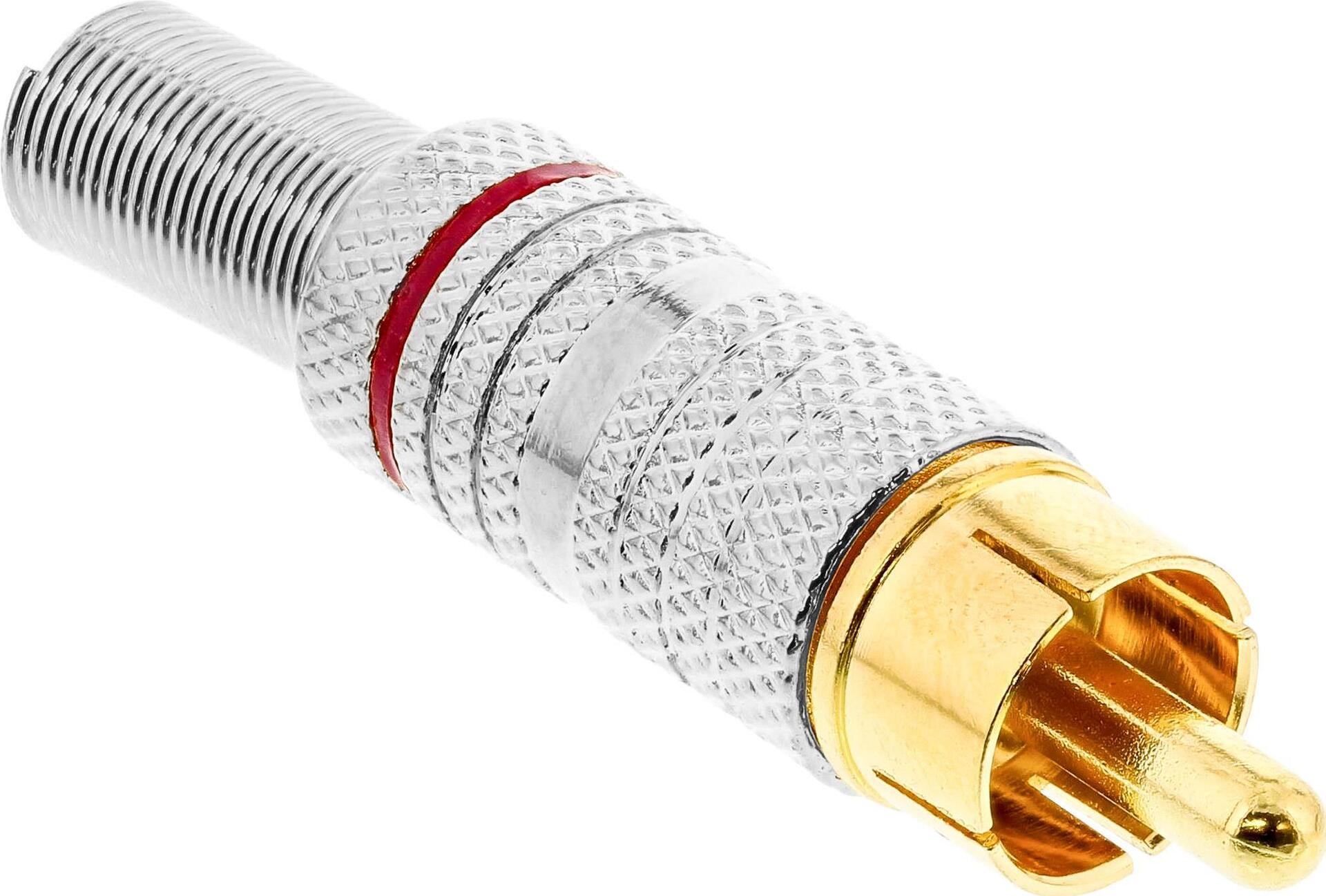 InLine® Cinchstecker Lötversion, Metall silber, Ring rot, für 6mm Kabel• Cinchstecker silbern