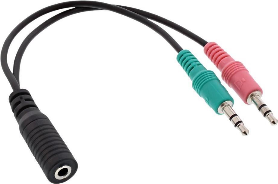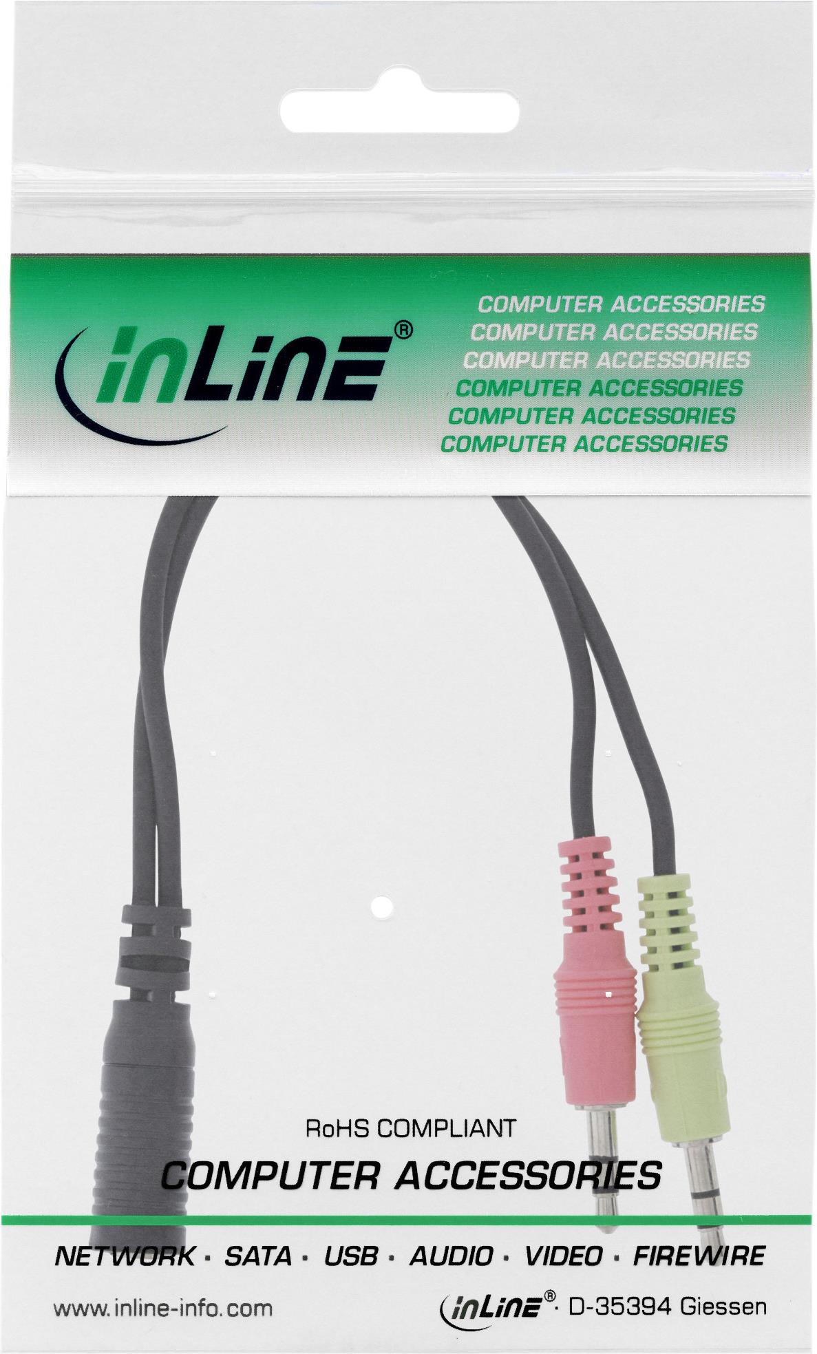 InLine - Headsetadapter - Mini-Stecker (M) bis 4-poliger Mini-Stecker (W) - 15cm - Schwarz (99312I)