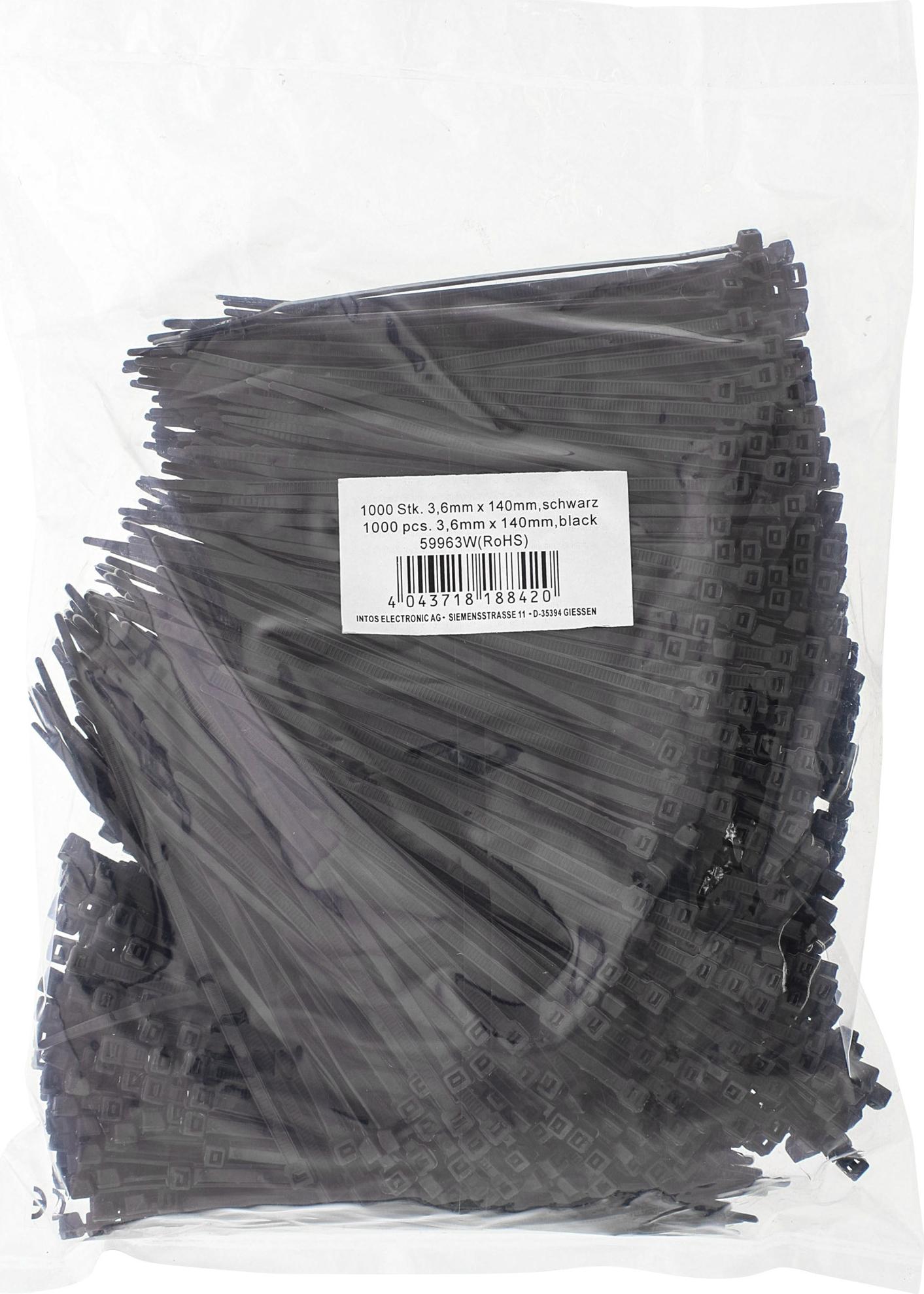 InLine Kabelbinder, Länge 140mm, Breite 3,6mm, schwarz, 1000 Stück, bulk (59963W)