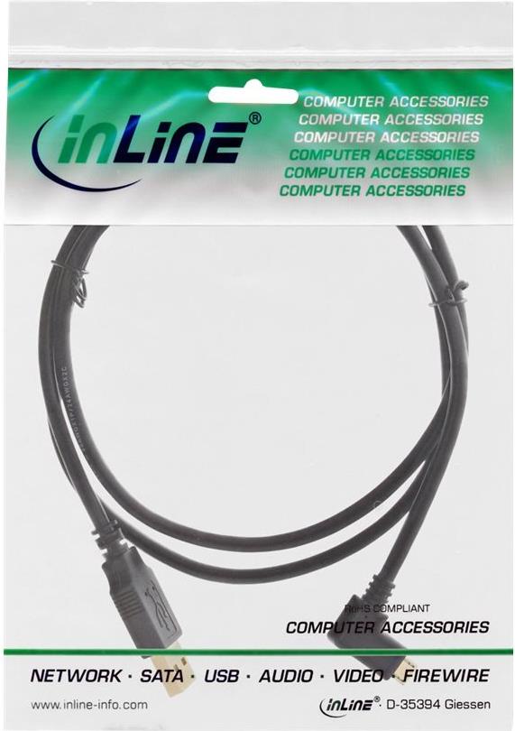 InLine® Micro-USB 2.0 Kabel, USB-A Stecker an Micro-B Stecker gewinkelt, vergoldete Kontakte, 1m (31710T)