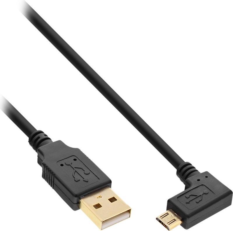 InLine® Micro-USB 2.0 Kabel, USB-A Stecker an Micro-B Stecker gewinkelt, vergoldete Kontakte, 2m (31720T)