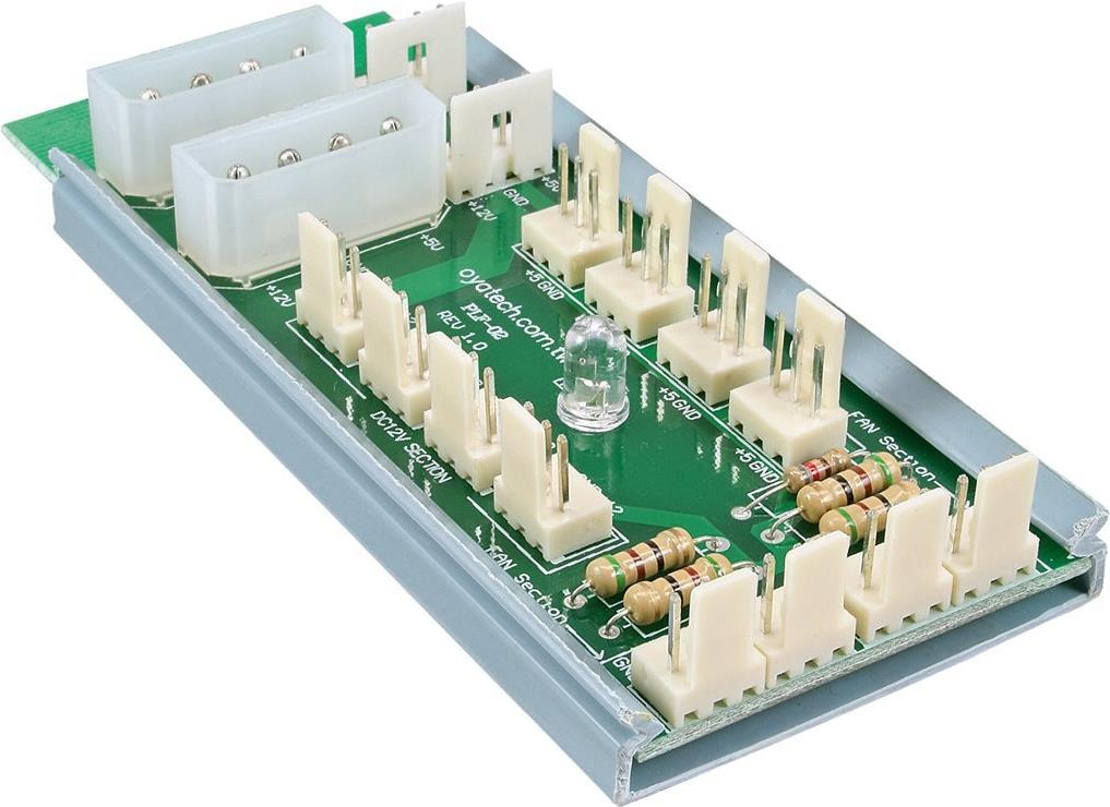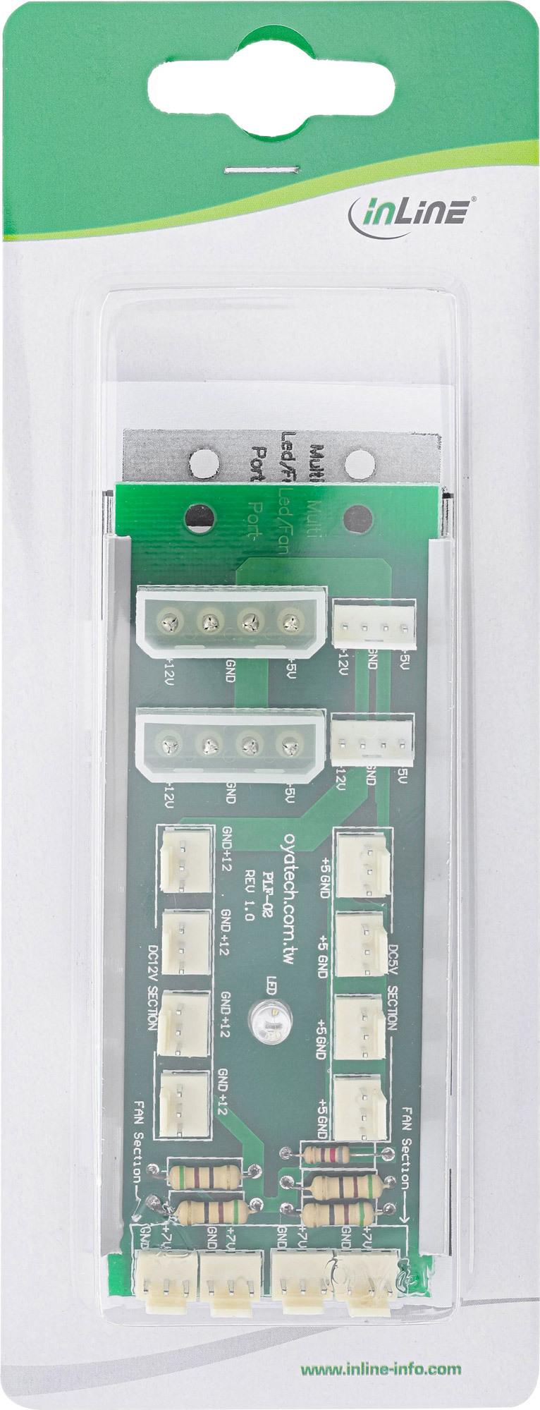 Dieser Multi Power Port (MPP) sorgt für Anschlussmöglichkeiten von bis zu 12 Lüftern. Für die Lüfter sind 4x 12V (3pin Molex), 4x 7V (3pin Molex) und 4x 5V (3pin Molex) Anschlüsse vorhanden. Der MPP wird direkt am Netzteil angeschlossen und signalisiert die Betriebsbereitschaft über eine rote LED.• 4x 12V (3pin Molex) Lüfter-Anschlüsse