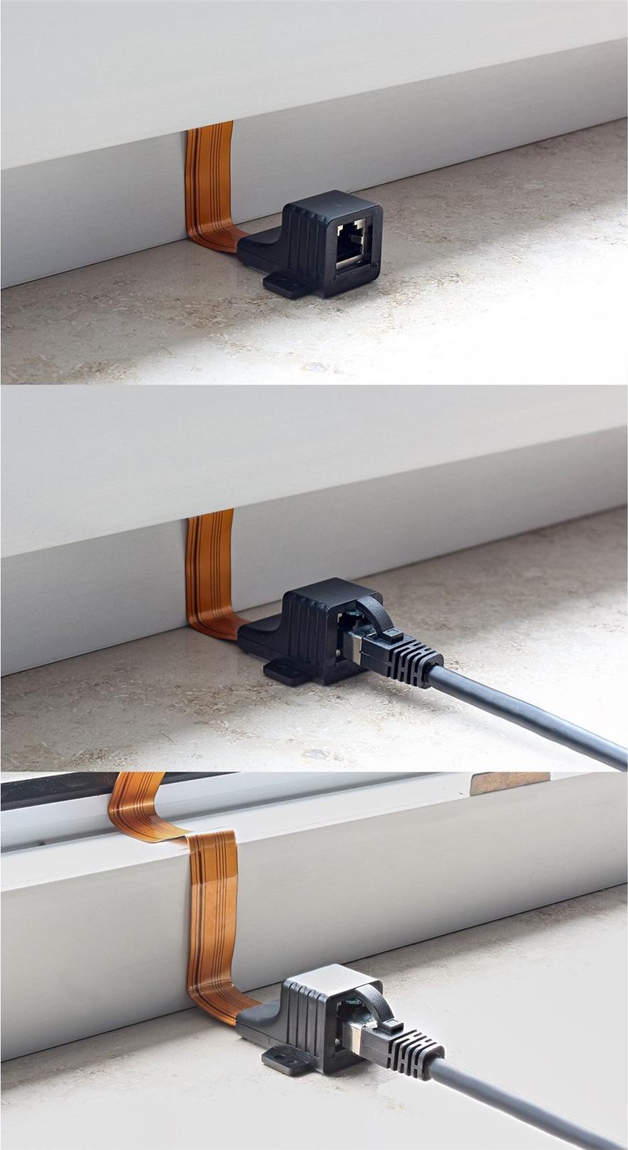 Die praktische InLine® Patchkabel Fensterdurchführung eignet sich, um einfach eine kurzzeitige Netzwerkverbindung durch geschlossene Fenster oder Türen herzustellen. Die extrem dünne Konstruktion des Kabels zwischen den beiden Buchsen passt sich an die Form zwischen Fenster-Flügel und -Rahmen an und wird einfach eingeklemmt.• 2x RJ45 Buchse• ungeschirmte Verbindung 1:1 (8-pin)• für Netzwerkverbindungen bis 100Mb/s verwendbarProdukttext[/head]Die praktische InLine® Patchkabel Fensterdurchführung eignet sich, um einfach eine kurzzeitige Netzwerkverbidung durch geschlossene Fenster oder Türen herzustellen. Die extrem dünne Konstruktion des Kabels zwischen den beiden Buchsen passt sich an die Form zwischen Fenster-Flügel und -Rahmen an und wird einfach eingeklemmt.2x RJ45 Buchseungeschirmte VerbindungLänge ca. 0,3m[head]Hauptmerkmale
