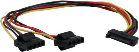 Stromanschlusskabel für Standard Festplatten an S-ATA Stromanschluss des Netzteils.• 2x 4pol Stromstecker an 15pol S-ATA Strombuchse