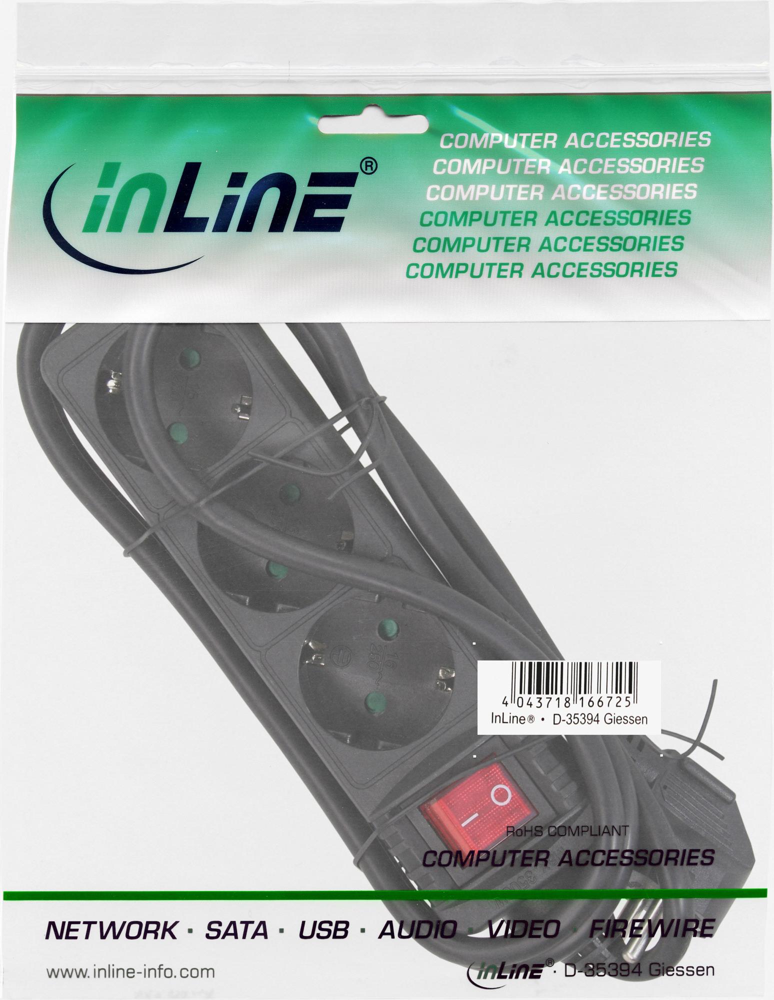 InLine® Steckdosenleiste, 3-fach Schutzkontakt, mit Schalter, 1,5m, schwarz (16431S)