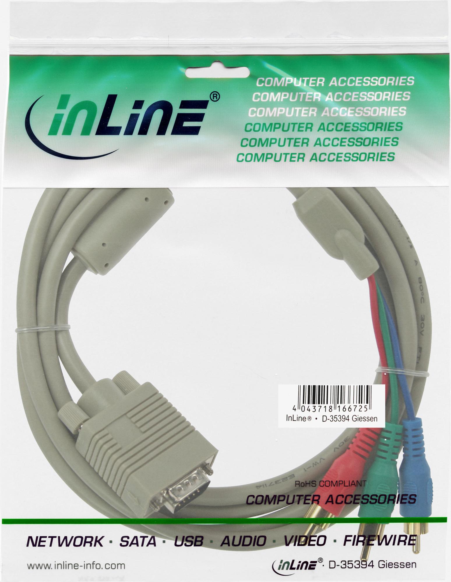InLine VGA RGB Kabel, VGA Stecker an 3x Cinch Stecker - 2m (17202)