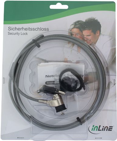 Hochwertiges Sicherheits-Kabelschloss mit Schlüssel. Durch ein starkes Stahlseil mit 4,4mm Durchmesser ist das Schloss äußerst robust. Eine edle Vernickelung der Oberfläche gibt dem Schloss eine ausgezeichnete Optik und unterstreicht die Qualität. Das Schloss ist optimal geeignet zum Sichern von Notebooks auf Messen, in Verkaufsräumen, an Kassen etc.• Sicherheitsschloss, mit Schlüssel
