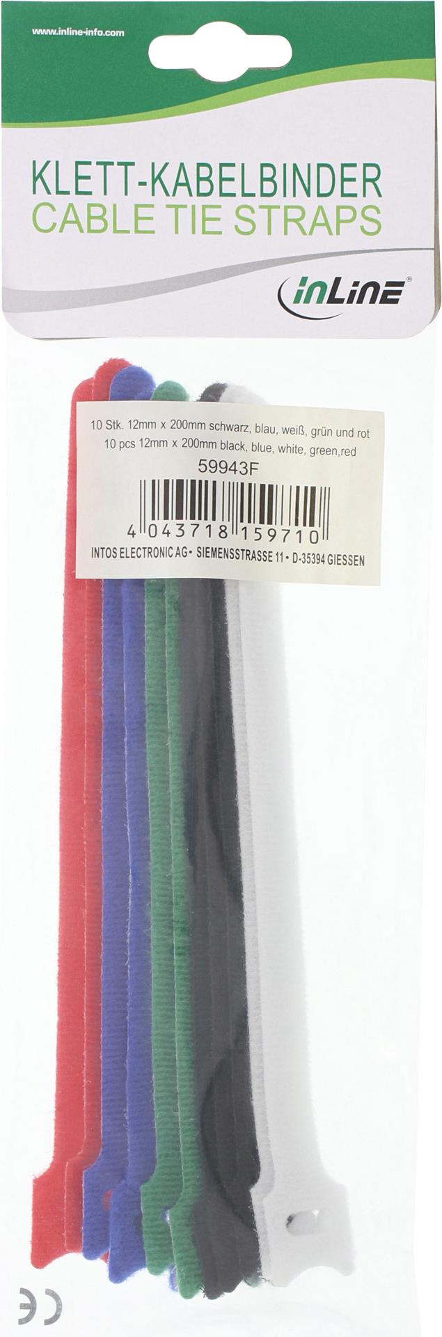 InLine® Kabelbinder 12x150mm, Klett-Verschluss, 10er, 5 versch. Farben (59943E)